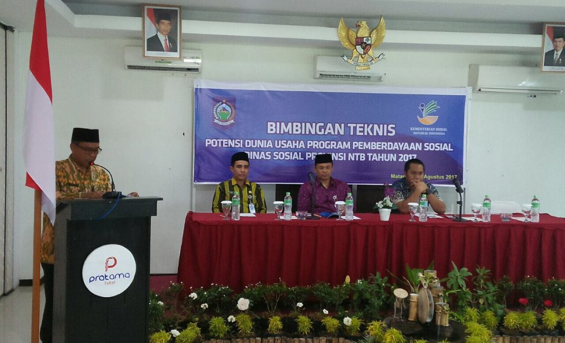 Dinas sosial (Dinsos) NTB menggelar bimbingan teknis (bimtek) tentang potensi dunia usaha program pemberdayaan sosial. Kegiatan yang digelar di salah satu hotel di Mataram ini di ikuti 30 peserta. Tujuannya, untuk menginformasikan dan mengoordinasikan program-program kegiatan peningkatan potensi dunia usaha.