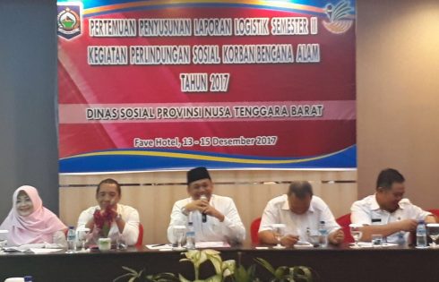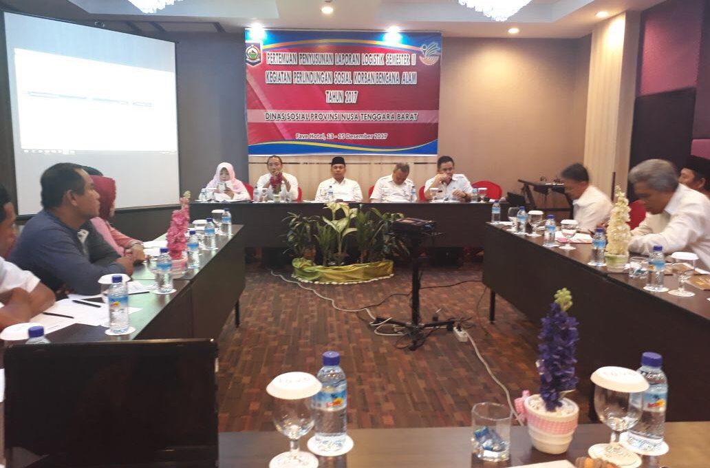 Kepala Dinas Sosial Provinsi NTB H Ahsanul Khalik (tengah) saat membuka acara pertemuan penyusunan laporan logistik semester II di Fave Hotel, kemarin (13/12)