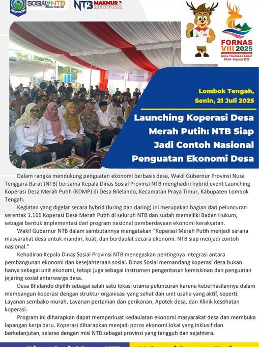 Launching Koperasi Merah Putih di Desa Bilelando, Kabupaten Lombok Tengah Nusa Tenggara Barat 21 Juli 202524 Juli 2025 Tim Humas Post Views: 9