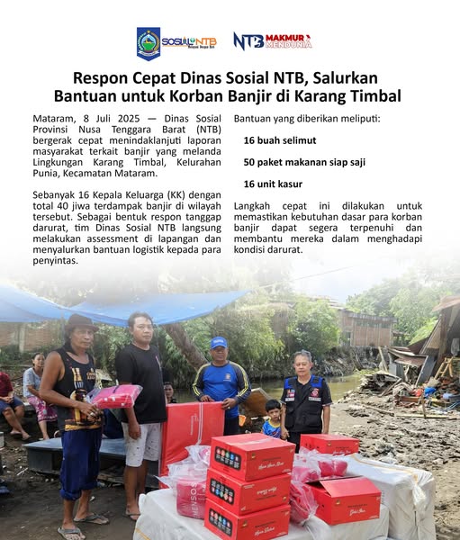 Respon Cepat Dinas Sosial Provinsi NTB, Salurkan Bantuan Kepada Korban Banjir di Karang Timbal Kota Mataram 8 Juli 202528 Juli 2025 Tim Humas Post Views: 60