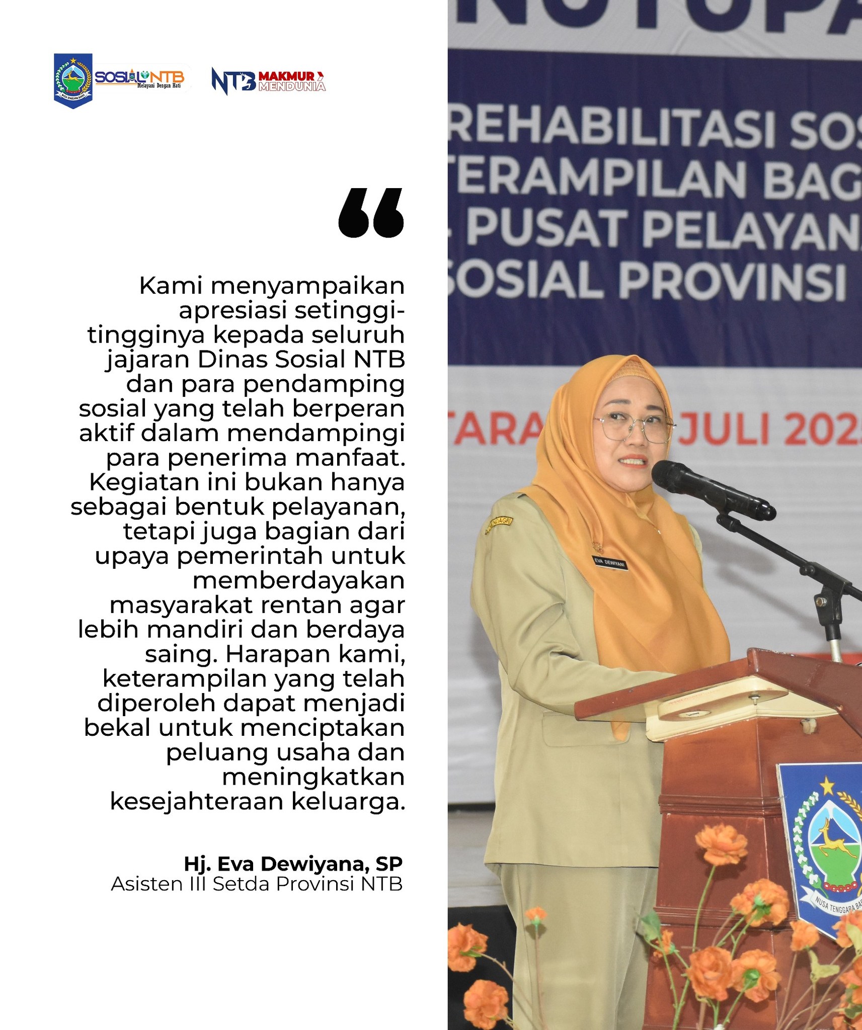 Dinsos NTB Tutup Program Bimbingan dan Pelatihan di 4 Puslansos, Serahkan Bantuan dan Pamerkan Hasil Karya Penerima Manfaat