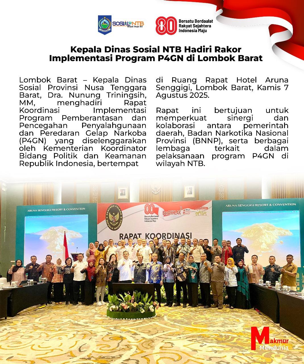 Kepala Dinas Sosial NTB Hadiri Rakor Implementasi Program P4GN di Lombok Barat 8 Agustus 202511 Agustus 2025 Tim Humas Post Views: 12