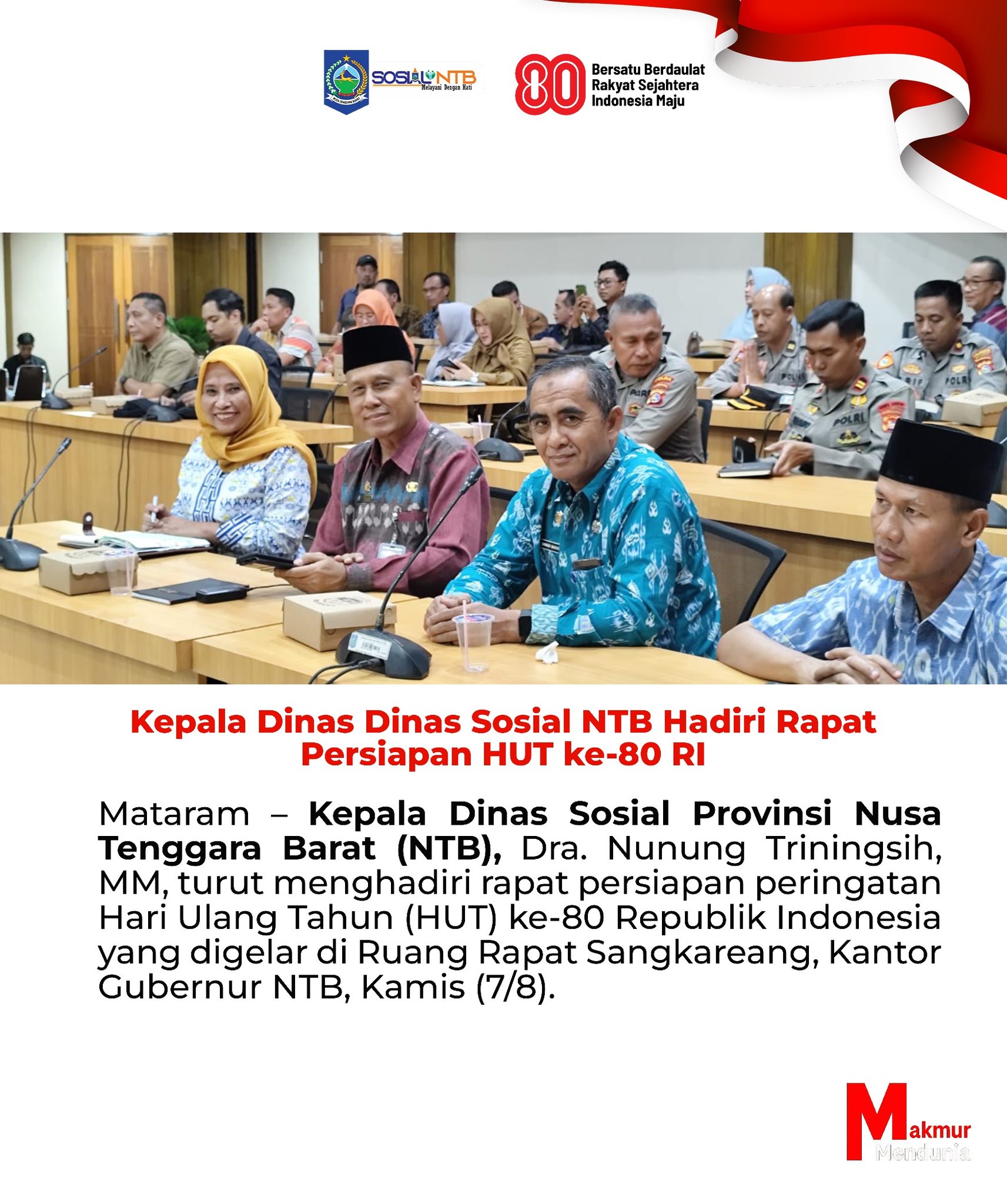 Kepala Dinas Sosial NTB Hadiri Rapat Persiapan HUT Ke-80 RI 7 Agustus 202511 Agustus 2025 Tim Humas Post Views: 12