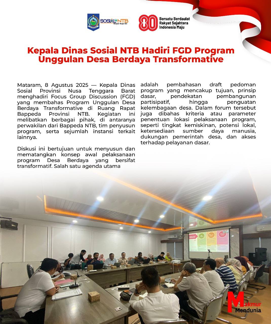 Kepala Dinas Sosial NTB Hadiri FGD Program Unggulan Desa Berdaya Transformative 8 Agustus 202512 Agustus 2025 Tim Humas Post Views: 15