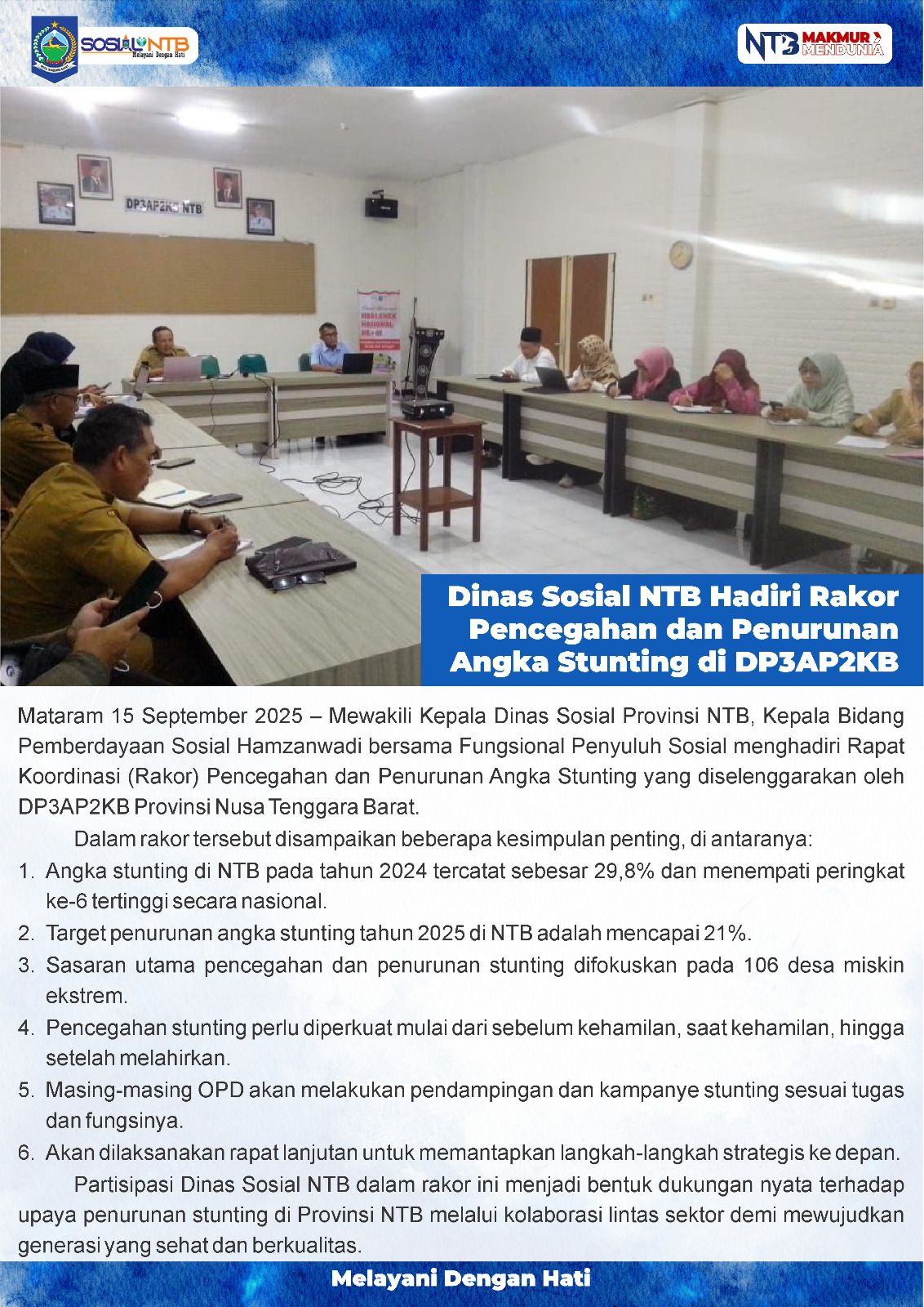 Dinas Sosial NTB Hadiri Rakor Pencegahan dan Penurunan Angka Stunting di DP3AP2KB 16 September 202519 September 2025 Tim Humas Post Views: 9