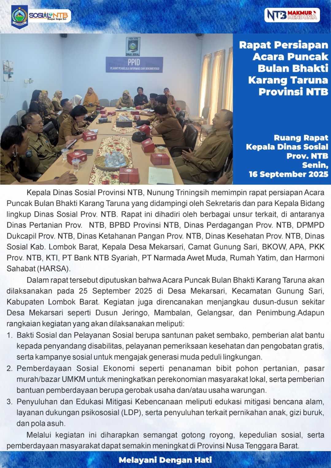 Rapat Bulan Bhakti Karang Taruna Provinsi Nusa Tenggara Barat 18 September 202519 September 2025 Tim Humas Post Views: 10