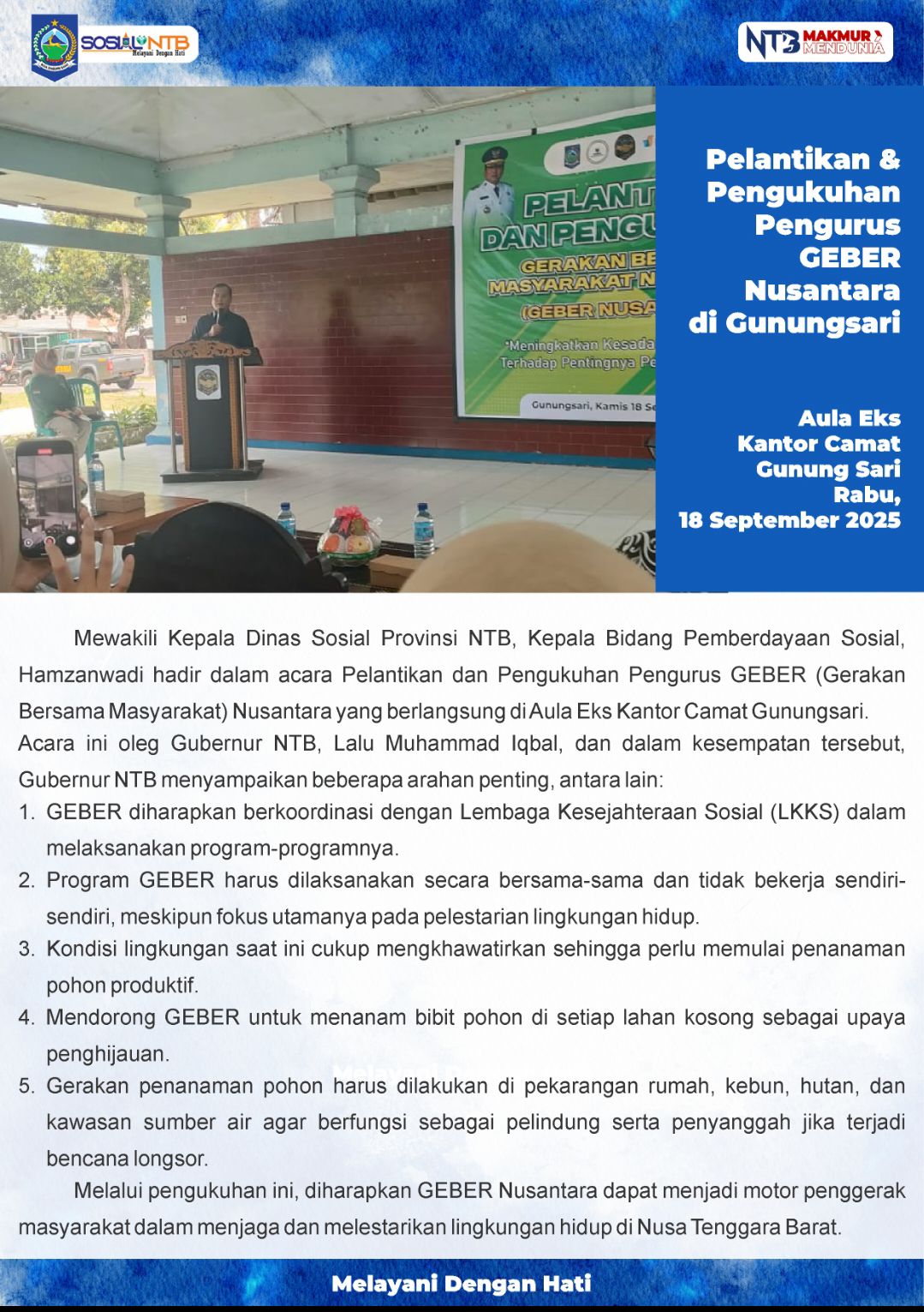 Pelantikan dan Pengukuhan Pengurus GEBER Nusantara oleh Gubernur NTB 18 September 202519 September 2025 Tim Humas Post Views: 7