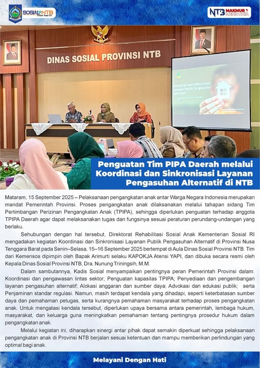 Penguatan Tim PIPA Daerah Melalui Koordinasi Dan Sinkronisasi Layanan Pengasuhan Alternatif Di NTB 15 September 202522 September 2025 Sosial NTB Post Views: 10
