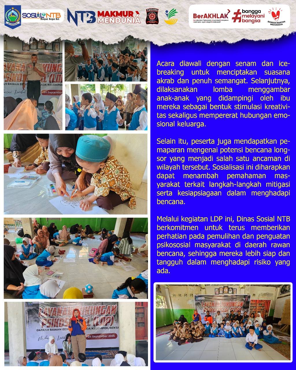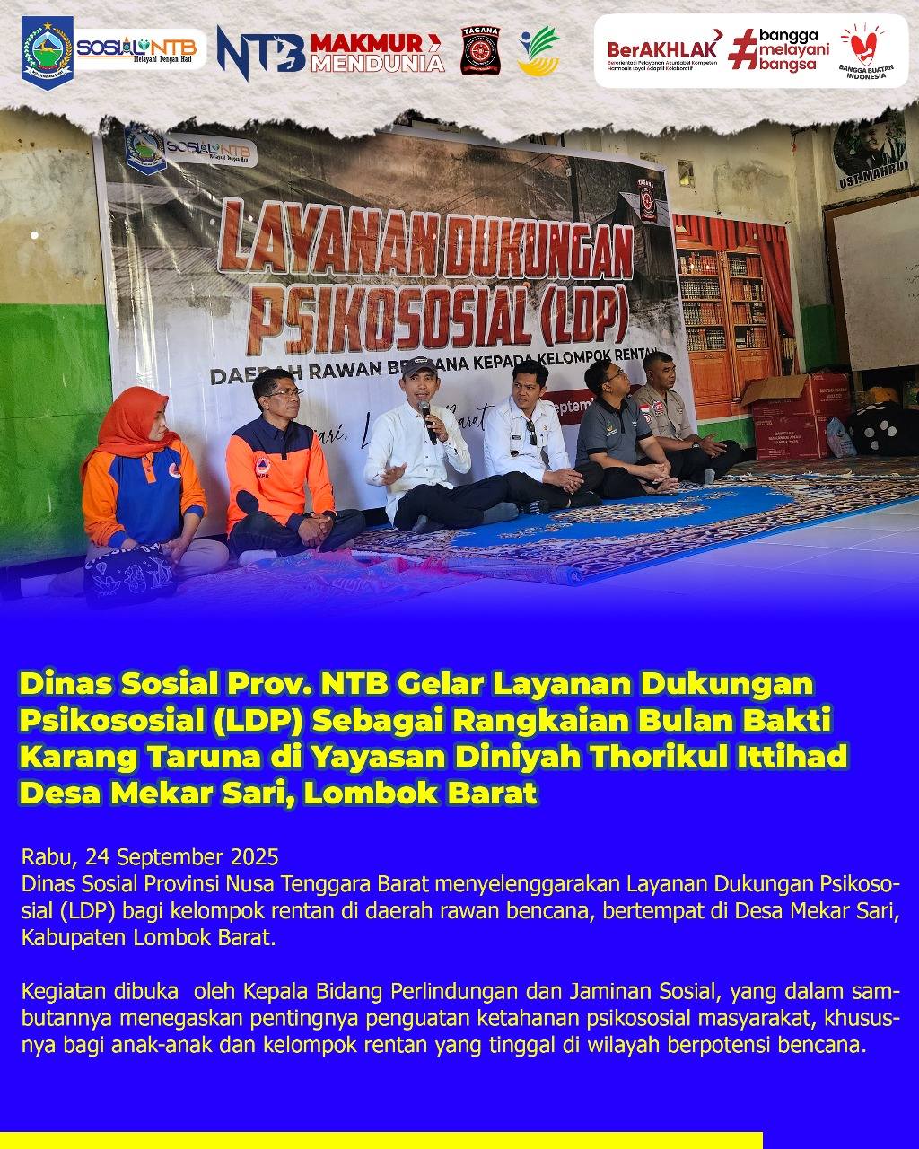 DINAS SOSIAL PROVINSI NTB > Berita > Dinas Sosial Provinsi NTB Gelar Layanan Dukungan Psikososial (LDP) Sebagai Rangkaian Bulan Bakti Karang Taruna di Yayasan Diniyah Thorikul Ittihad Desa Mekar Sari Kabupaten Lombok Barat