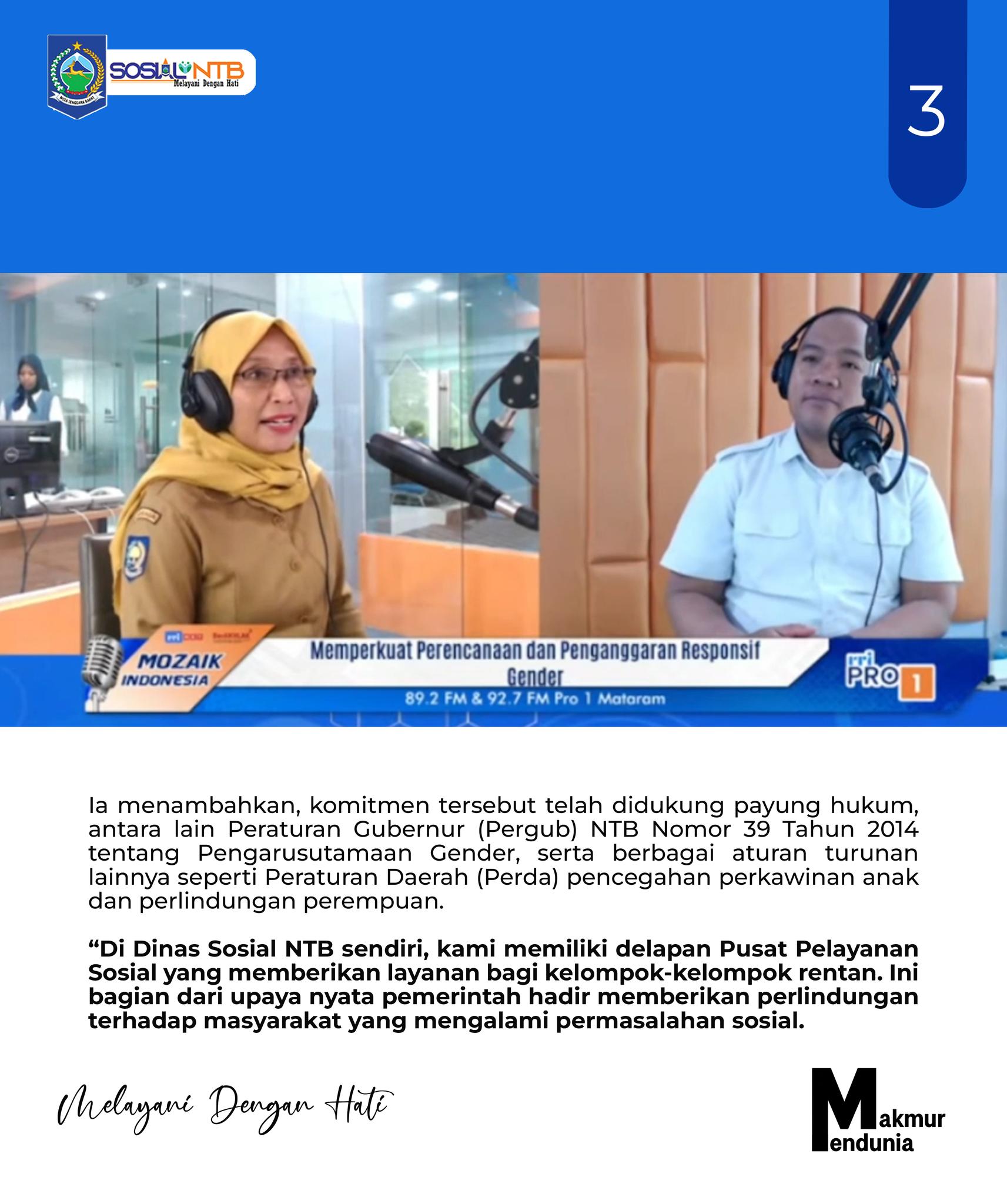 Kepala Dinas Sosial NTB Menjadi Narasumber Dalam Dialogs Interaktif RRI Mataram “Memperkuat Perencanaan dan Penganggaran Responsif Gender”