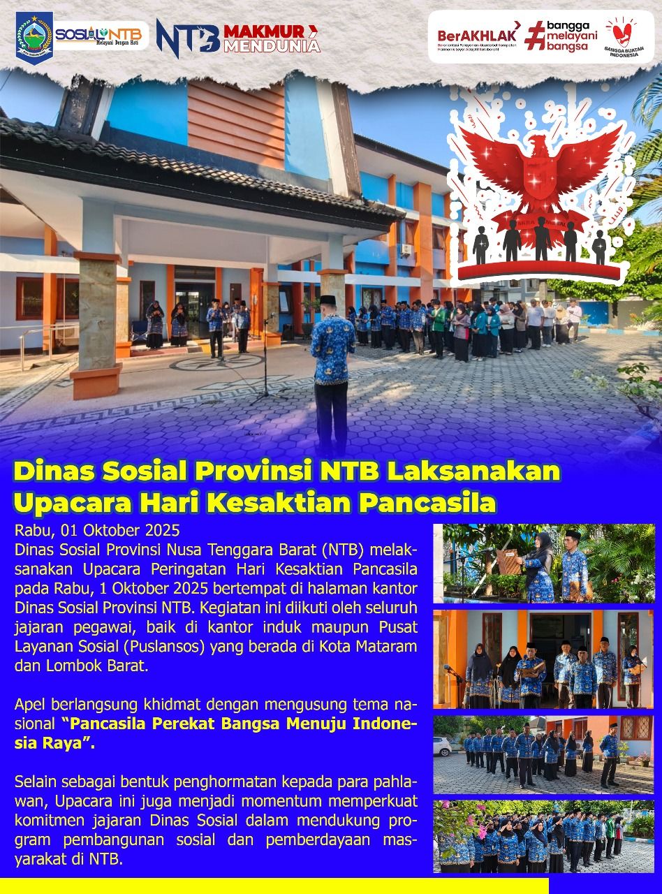 Dinas Sosial Provinsi NTB Laksanakan Upacara Hari Kesaktian Pancasila 1 Oktober 20253 Oktober 2025 Tim Humas Post Views: 12