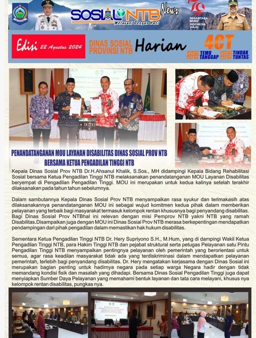Penandatangan MOU Layanan Disabilitas Dinas Sosial NTB bersama Ketua Pengadilan Tinggi NTB bertempat di Ruang Rapat Pengadilan Tinggi Prov. NTB.