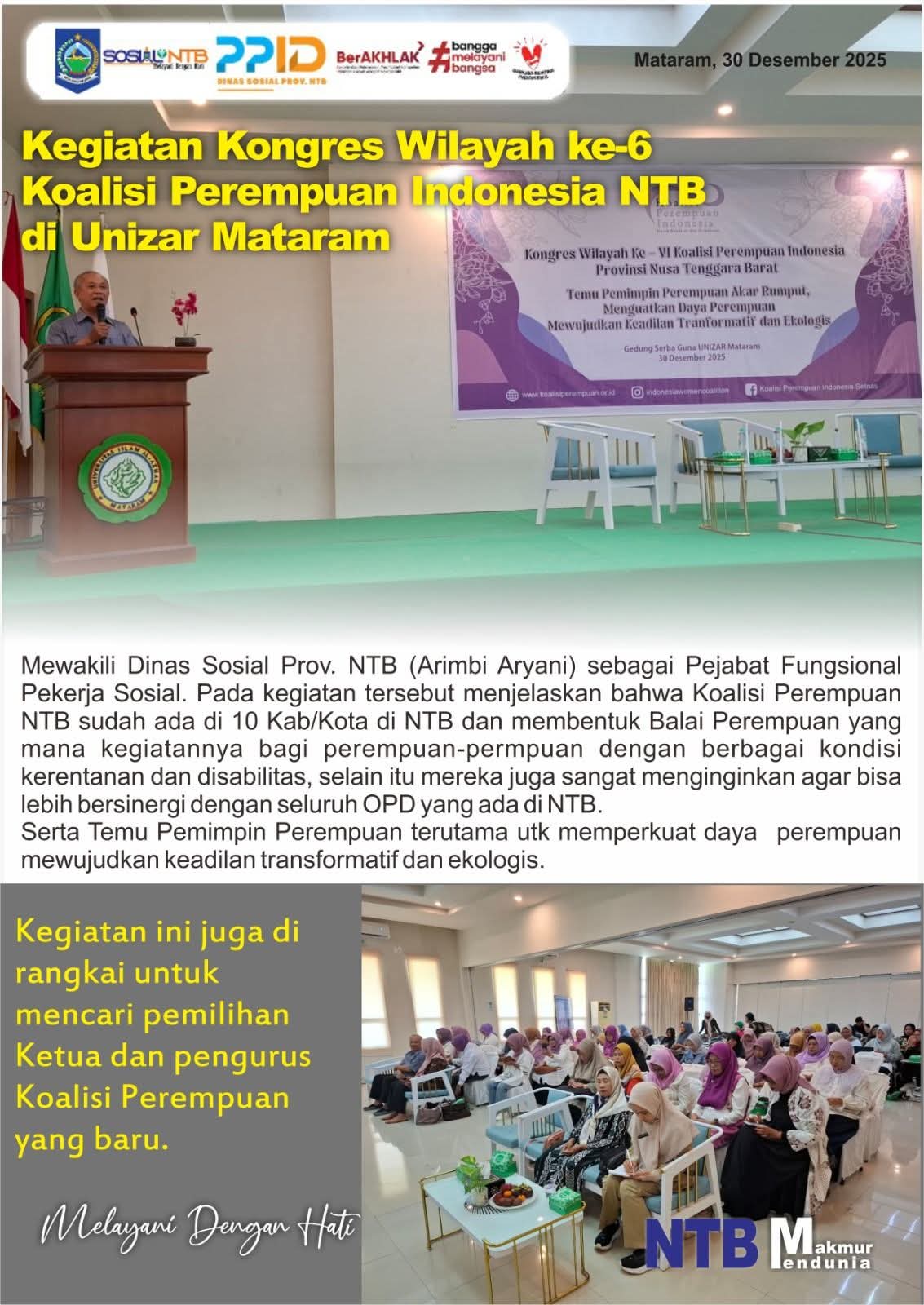 Mewakili Dinas Sosial Prov. NTB (Arimbi Aryani) menghadiri Kegiatan Kongres wilayah ke 6 Koalisi Perempuan Indonesia NTB di Unizar Mataram.
