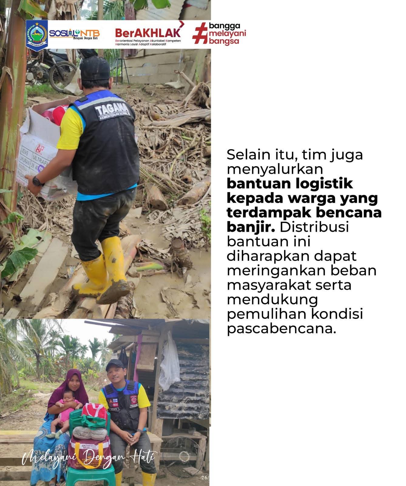 Tim Taruna Siaga Bencana (Tagana) NTB yang tergabung dalam Tim Medis Provinsi Nusa Tenggara Barat (NTB) melaksanakan kegiatan penanganan pascabencana banjir di wilayah Sumatera pada Jumat, 26 Desember 2025.